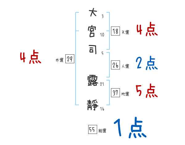 大宮司露靜さんの画数の鑑定結果