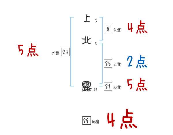 上北露さんの画数の鑑定結果