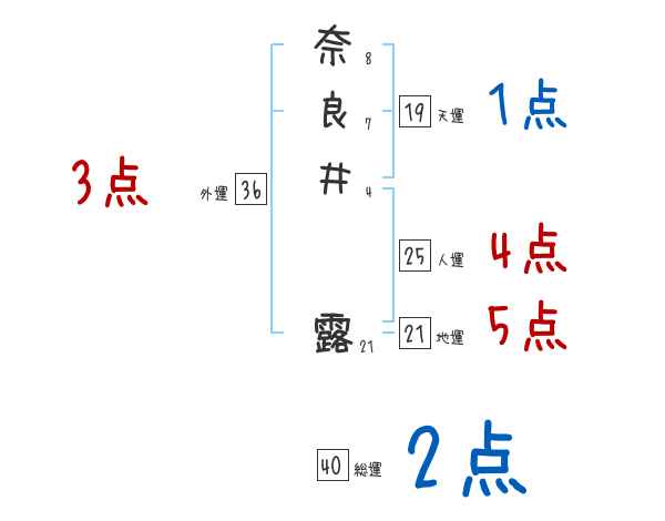 奈良井露さんの画数の鑑定結果