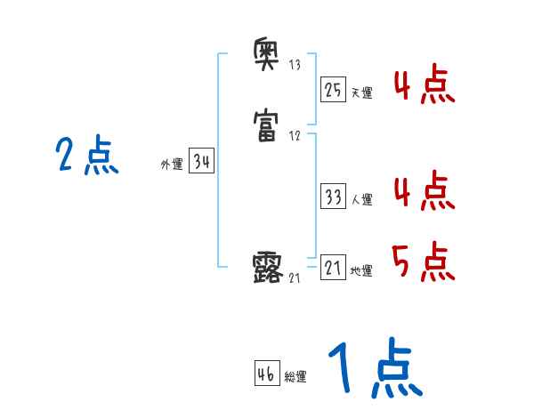 奥富露さんの画数の鑑定結果