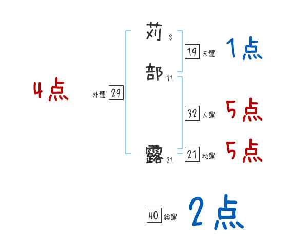 苅部露さんの画数の鑑定結果