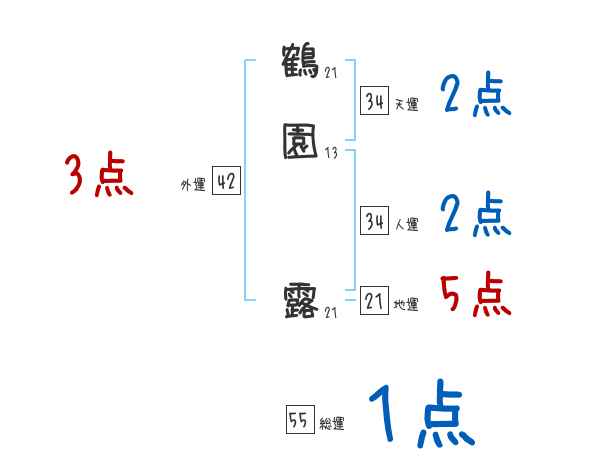 鶴園露さんの画数の鑑定結果