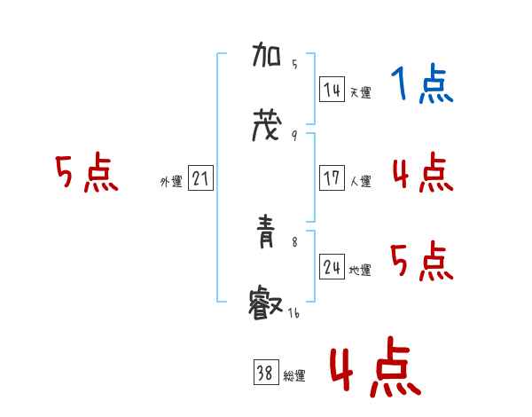 加茂青叡さんの画数の鑑定結果