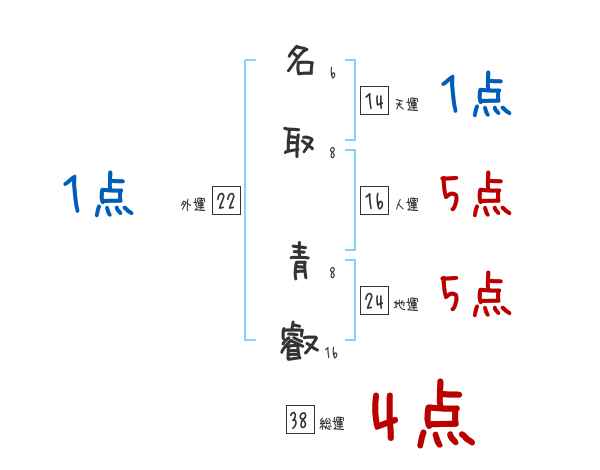 名取青叡さんの画数の鑑定結果