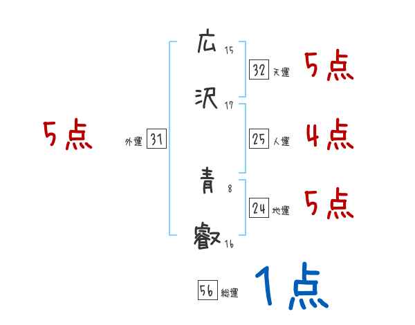 広沢青叡さんの画数の鑑定結果