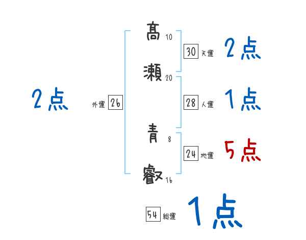 家系が持つ宿命的な運勢を表します。祖先から受け継いだ苗字ですので自分の力が及びません。家柄を象徴します。