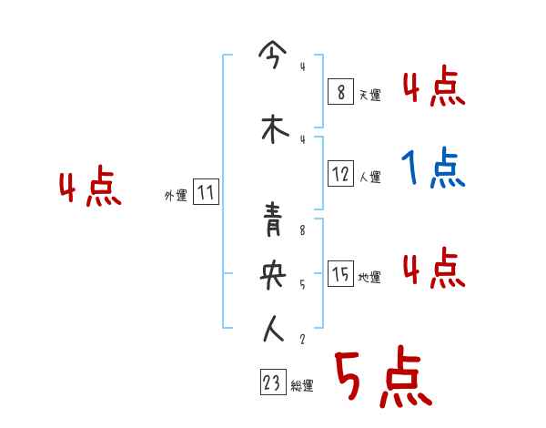 総運![]() | 今木青央人さんの総運は23画の5つ星!想像力に優れ活力がある。一代で成功し名誉を手に入れる。 あなたの人生を表す1番重要な運勢です。生涯を通じて影響する総合運となり、主に50歳以降の晩年期に影響を及ぼします。 |