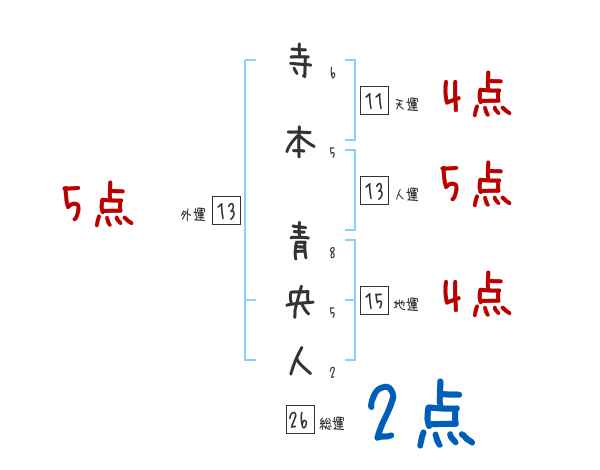 寺本青央人さんの画数の鑑定結果