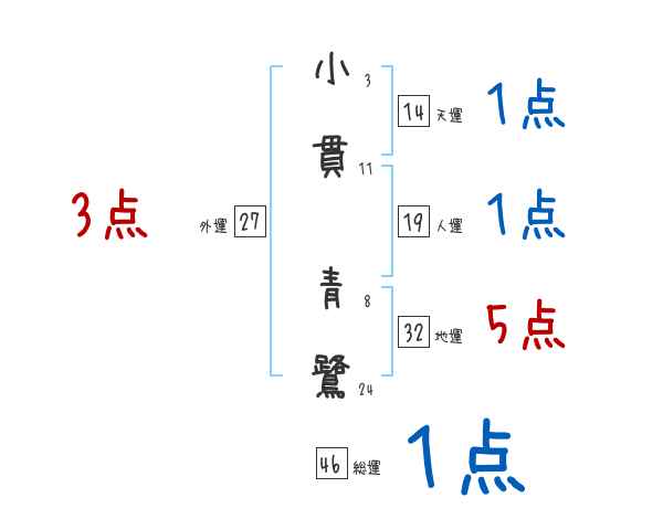 小貫青鷺さんの画数の鑑定結果