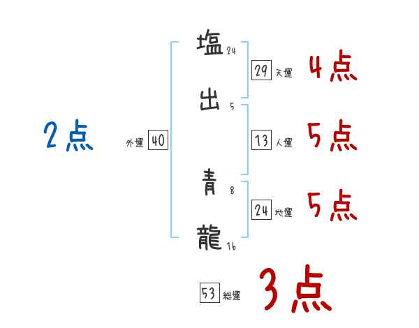 塩出青龍さんの画数の鑑定結果