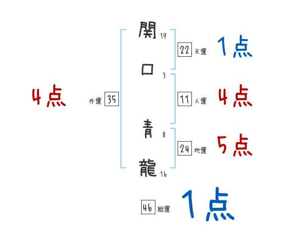 関口青龍さんの画数の鑑定結果