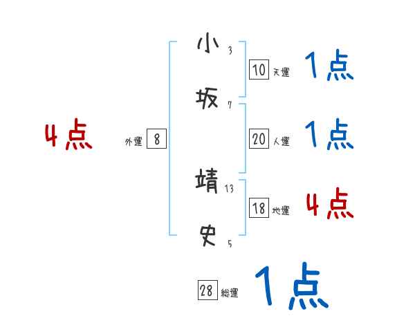 小坂靖史さんの画数の鑑定結果