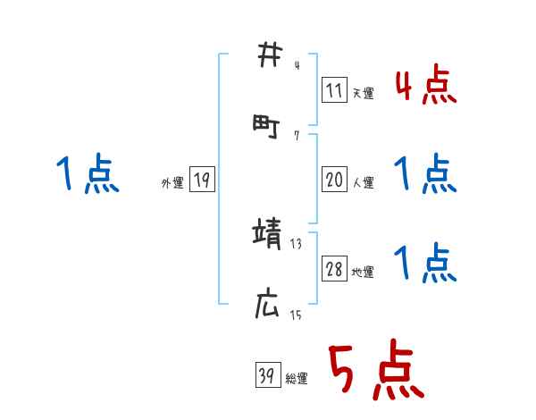 井町靖広さんの画数の鑑定結果