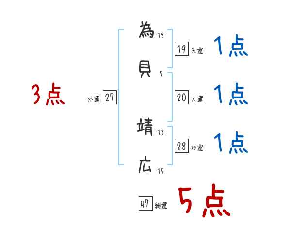 為貝靖広さんの画数の鑑定結果