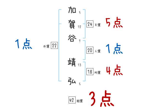 加賀谷靖弘さんの画数の鑑定結果