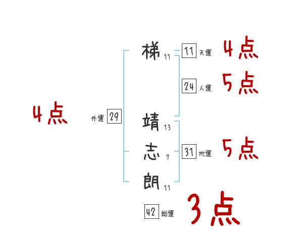 梯靖志朗さんの画数の鑑定結果