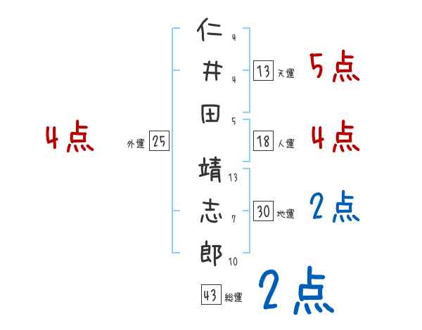 総運![]() | 仁井田靖志郎さんの総運は43画の2つ星!頑固な性格で独立心が強いかも。やや非現実的で浪費に注意しましょう。 あなたの人生を表す1番重要な運勢です。生涯を通じて影響する総合運となり、主に50歳以降の晩年期に影響を及ぼします。 |