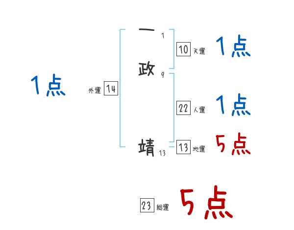 外運![]() | 一政靖さんの外運は14画の1つ星!人に対して優しいがストレスを溜め込みがち。人間関係のトラブルを避けるよう気をつけましょう。 生活面を象徴する運勢です。外部から受ける影響力を表し、結婚運、家庭運や職場、環境への順応性を表します。 |