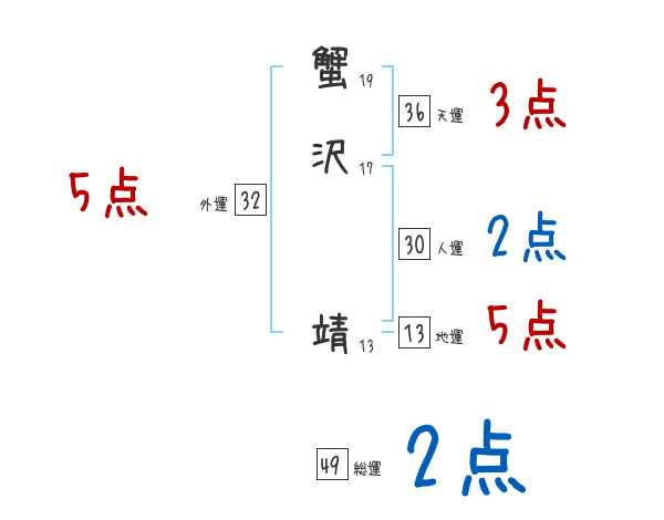 蟹沢靖さんの画数の鑑定結果