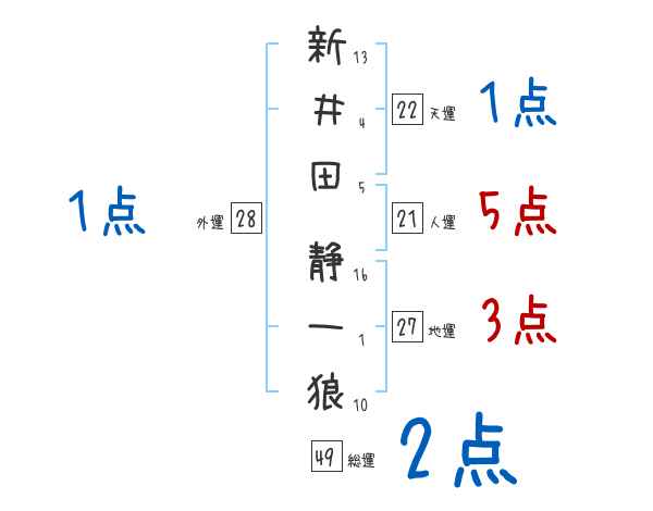 新井田静一狼さんの画数の鑑定結果