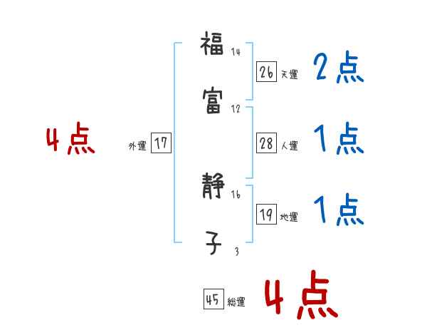 福富静子さんの画数の鑑定結果