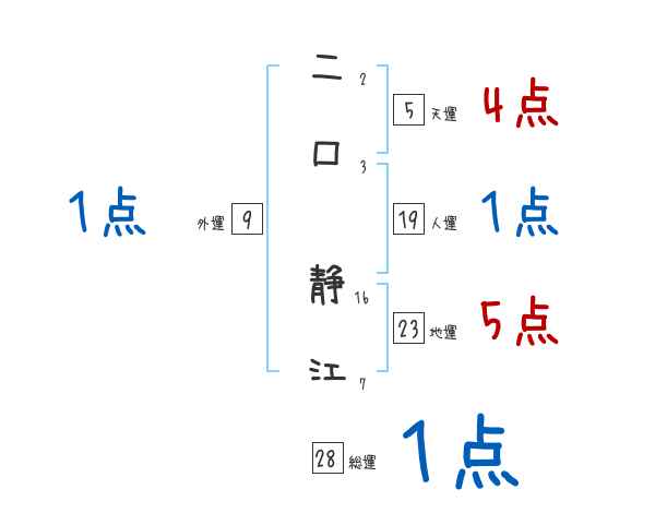 二口静江さんの画数の鑑定結果