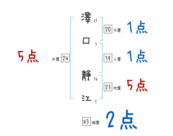 外運![]() | 澤口静江さんの外運は24画の5つ星!家庭運が良く順調な人生。金運にも恵まれる。 生活面を象徴する運勢です。外部から受ける影響力を表し、結婚運、家庭運や職場、環境への順応性を表します。 |