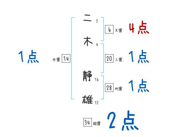 二木静雄さんの画数の鑑定結果
