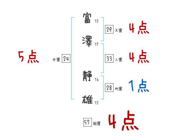 富澤静雄さんの画数の鑑定結果