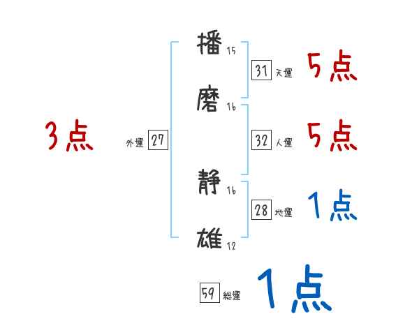 播磨静雄さんの画数の鑑定結果