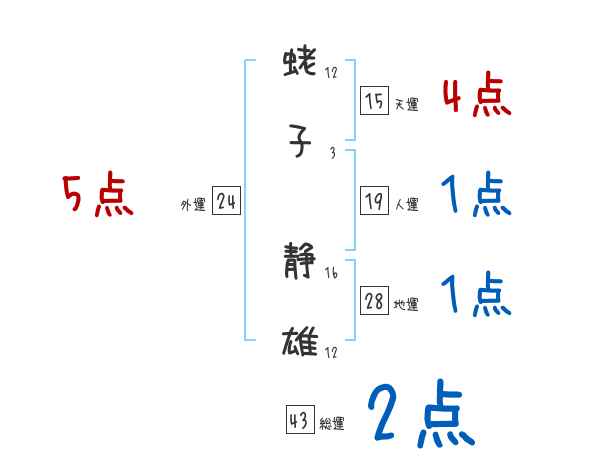 蛯子静雄さんの画数の鑑定結果