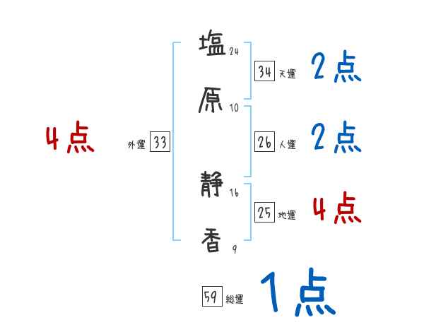 塩原静香さんの画数の鑑定結果