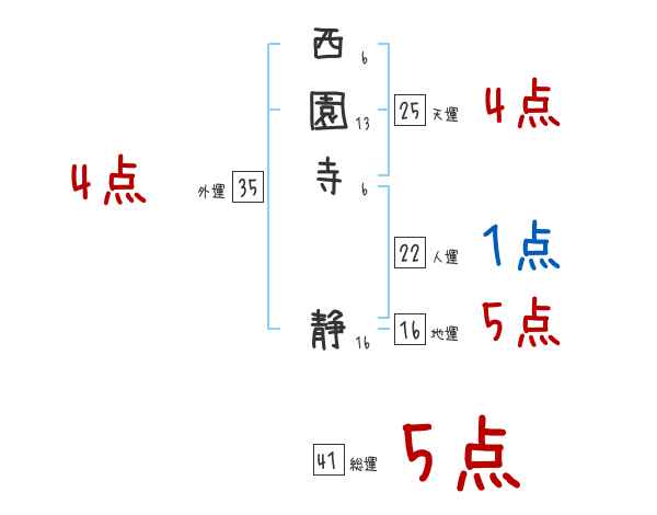 西園寺静さんの画数の鑑定結果