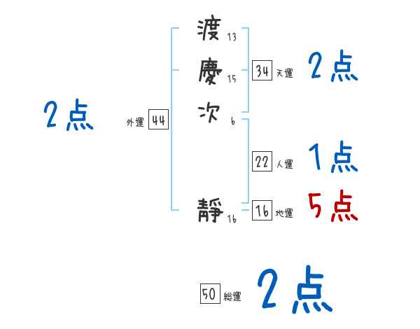渡慶次靜さんの画数の鑑定結果
