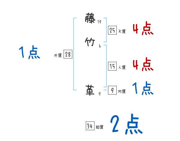 総運![]() | 藤竹革さんの総運は34画の2つ星!独創性に優れるが、自尊心が強く災難に注意しましょう。 あなたの人生を表す1番重要な運勢です。生涯を通じて影響する総合運となり、主に50歳以降の晩年期に影響を及ぼします。 |