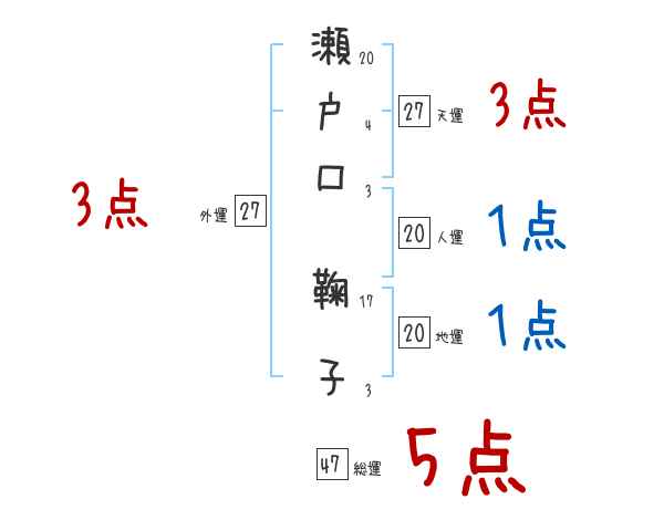 総運![]() | 瀬戸口鞠子さんの総運は47画の5つ星!実力が開花し発展する円満な人生。財に恵まれる。 あなたの人生を表す1番重要な運勢です。生涯を通じて影響する総合運となり、主に50歳以降の晩年期に影響を及ぼします。 |