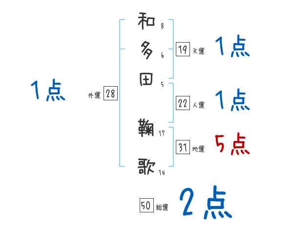 外運![]() | 和多田鞠歌さんの外運は28画の1つ星!家庭環境に注意。スポーツで活躍できる能力があるかも。 生活面を象徴する運勢です。外部から受ける影響力を表し、結婚運、家庭運や職場、環境への順応性を表します。 |
