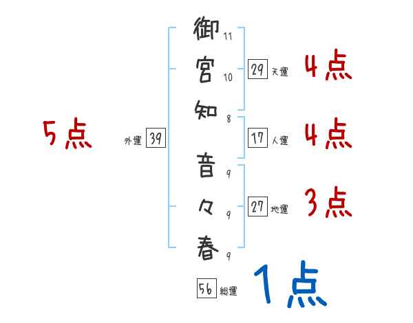 御宮知音々春さんの画数の鑑定結果