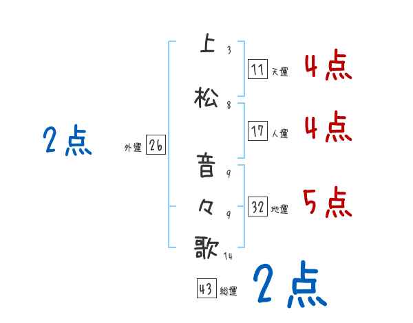 上松音々歌さんの画数の鑑定結果