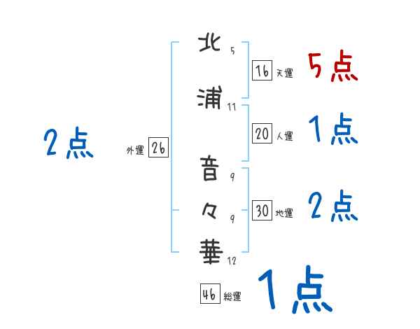 北浦音々華さんの画数の鑑定結果