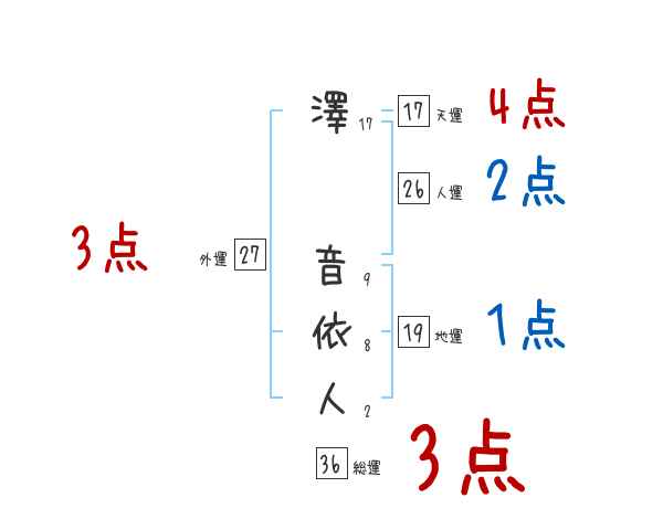 澤音依人さんの画数の鑑定結果