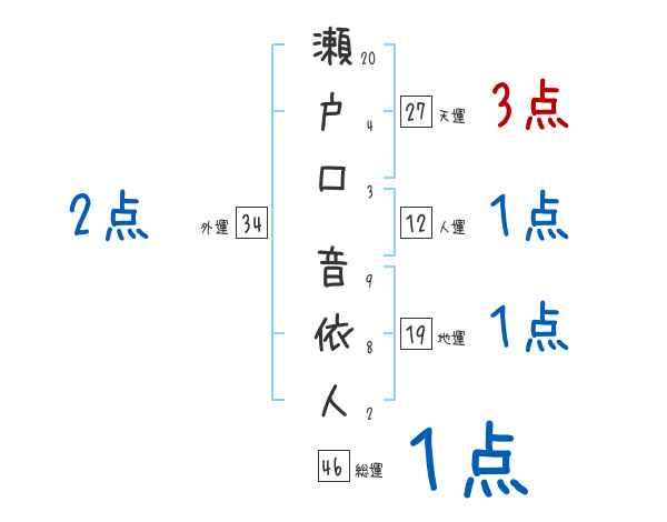 瀬戸口音依人さんの画数の鑑定結果