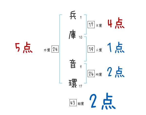 兵庫音環さんの画数の鑑定結果