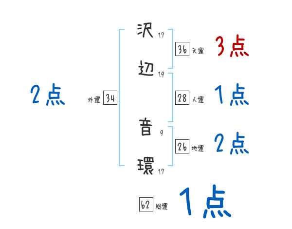 沢辺音環さんの画数の鑑定結果