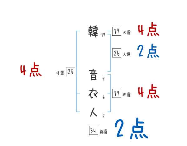 韓音衣人さんの画数の鑑定結果
