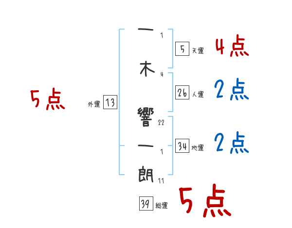 一木響一朗さんの画数の鑑定結果