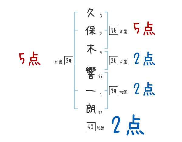 久保木響一朗さんの画数の鑑定結果