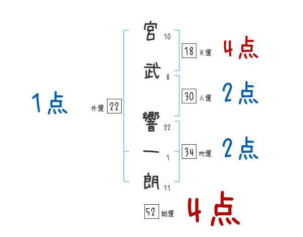 宮武響一朗さんの画数の鑑定結果