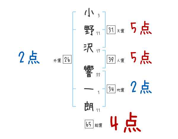 小野沢響一朗さんの画数の鑑定結果