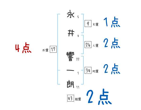 永井響一朗さんの画数の鑑定結果
